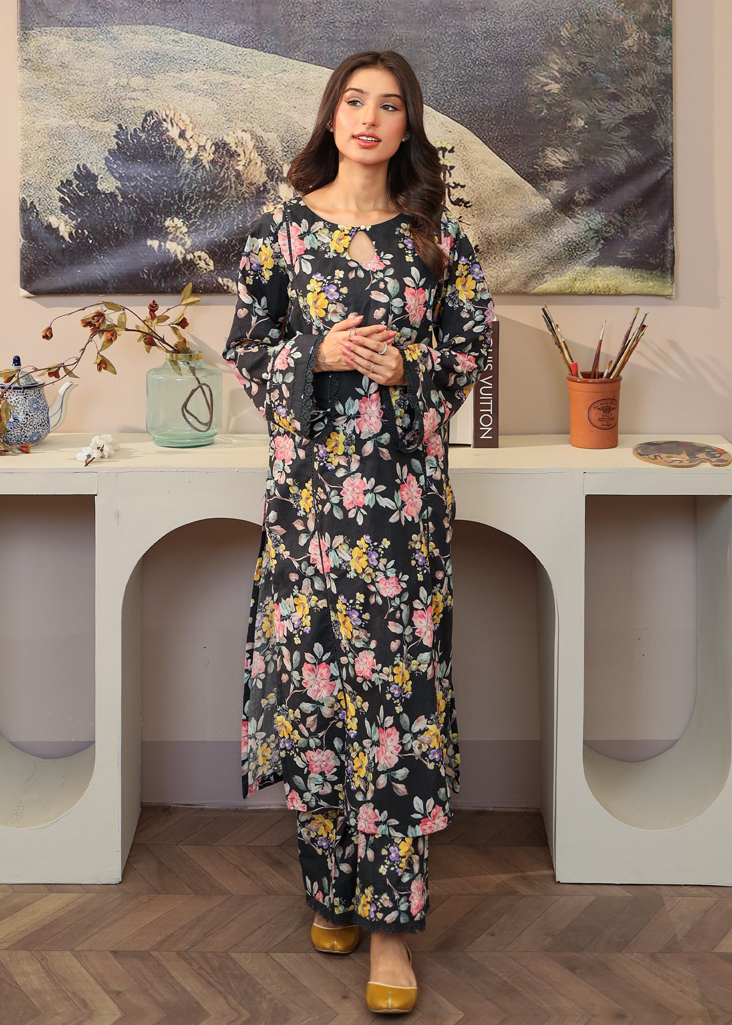 Black Floral 2 PC