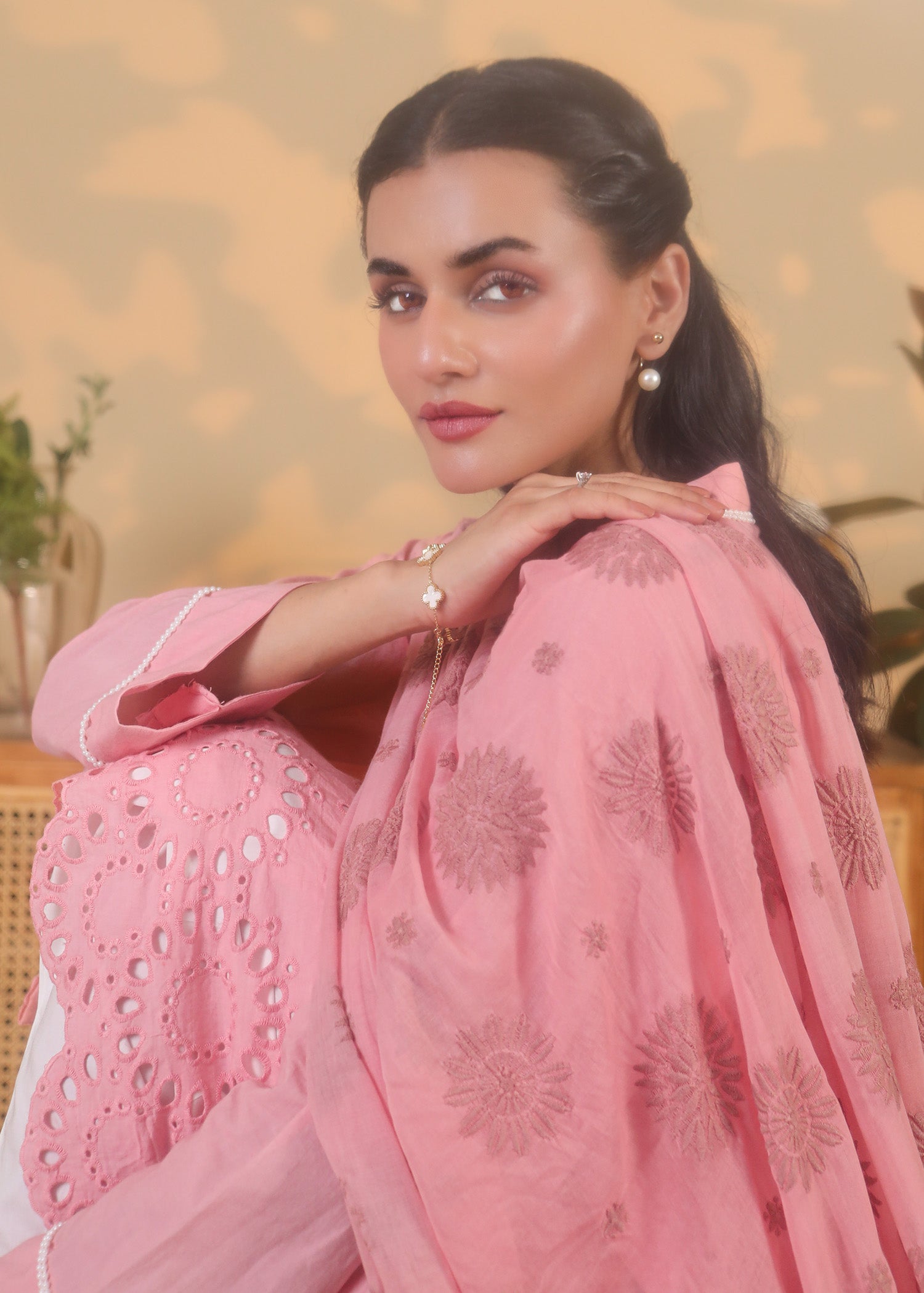 Color: Blush pink (top and dupatta), White (pants)