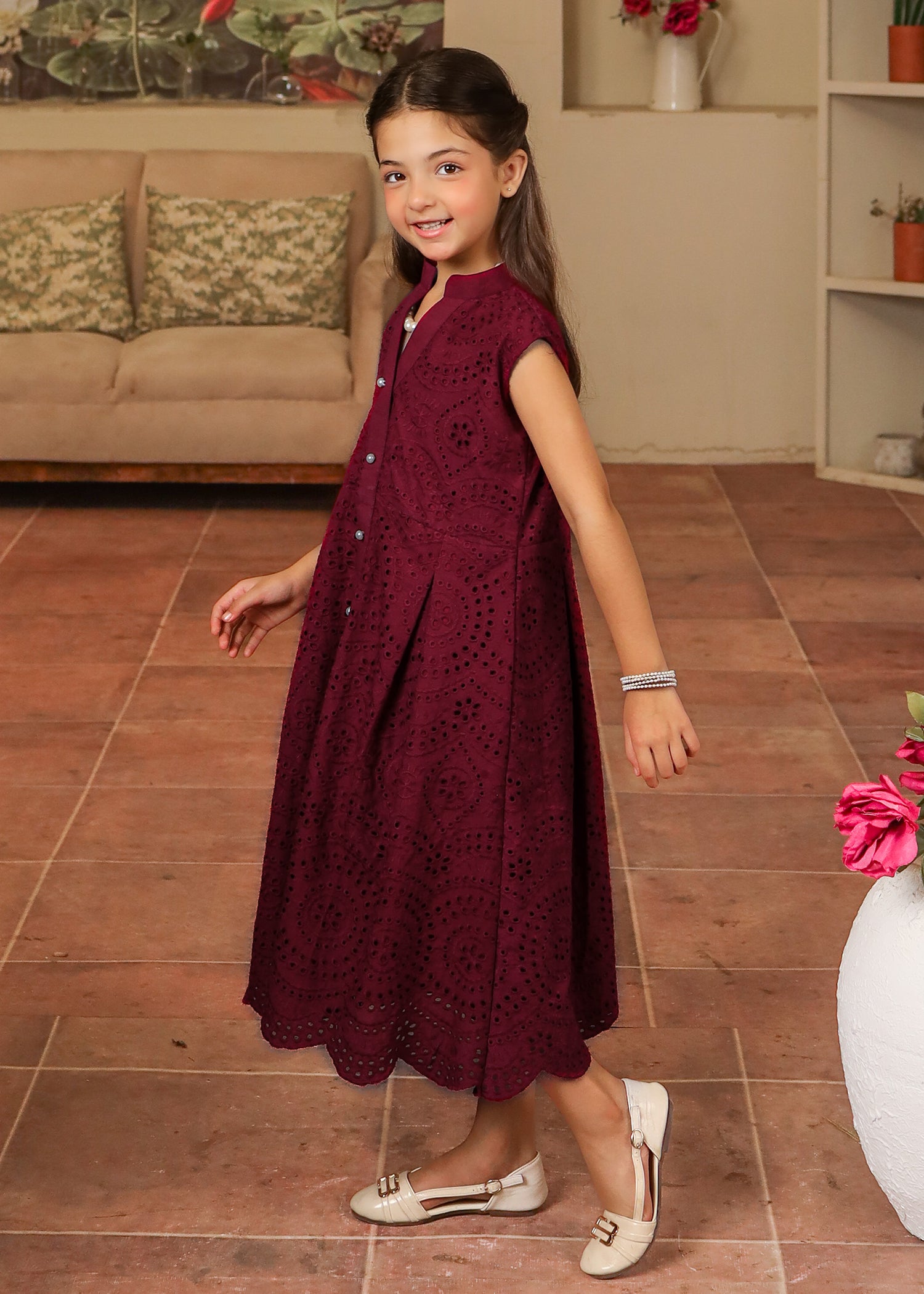 Fabric of the dress is eyelet (chikankari) with an attached lining.
