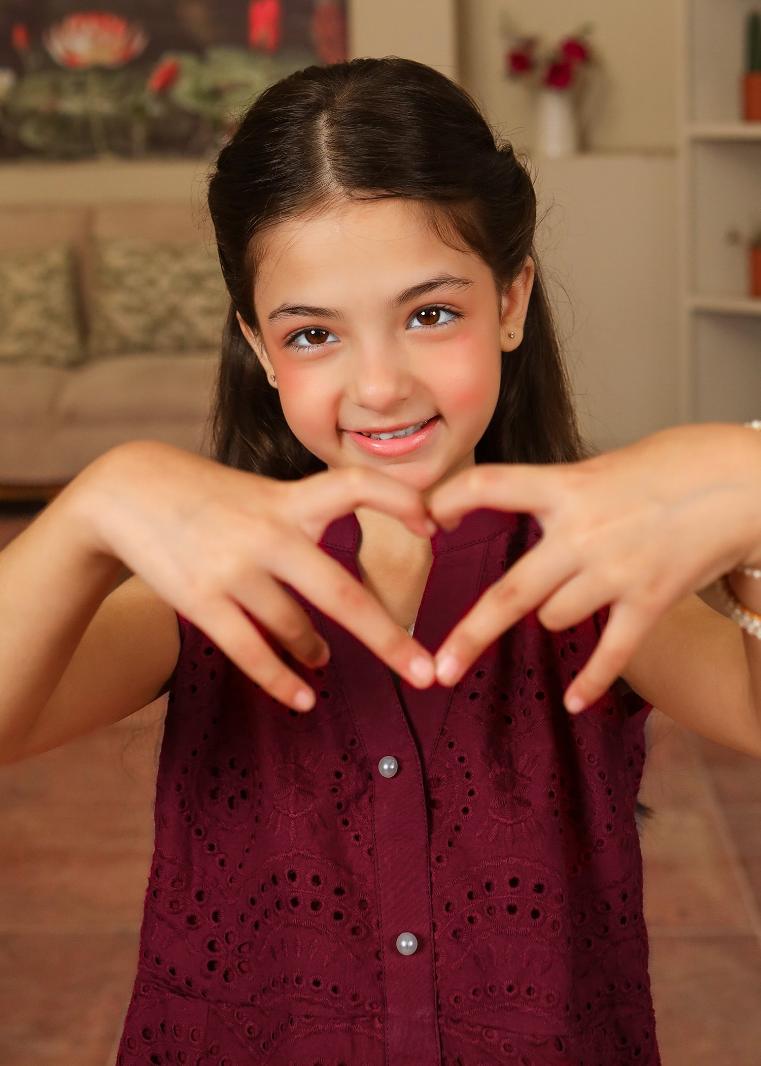 Delila is a modern twist on timeless elegance. Crafted from a gorgeous fuchsia pink eyelet fabric, it features a captivating V-neckline, intricate pearl button details. Made from a soft, lightweight fabric, it ensures comfort and breathability, perfect for summer days.