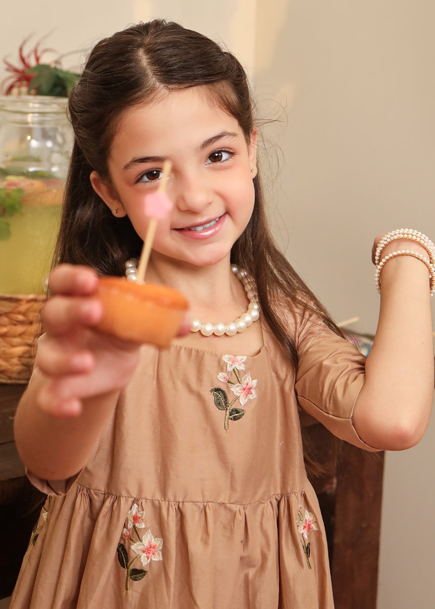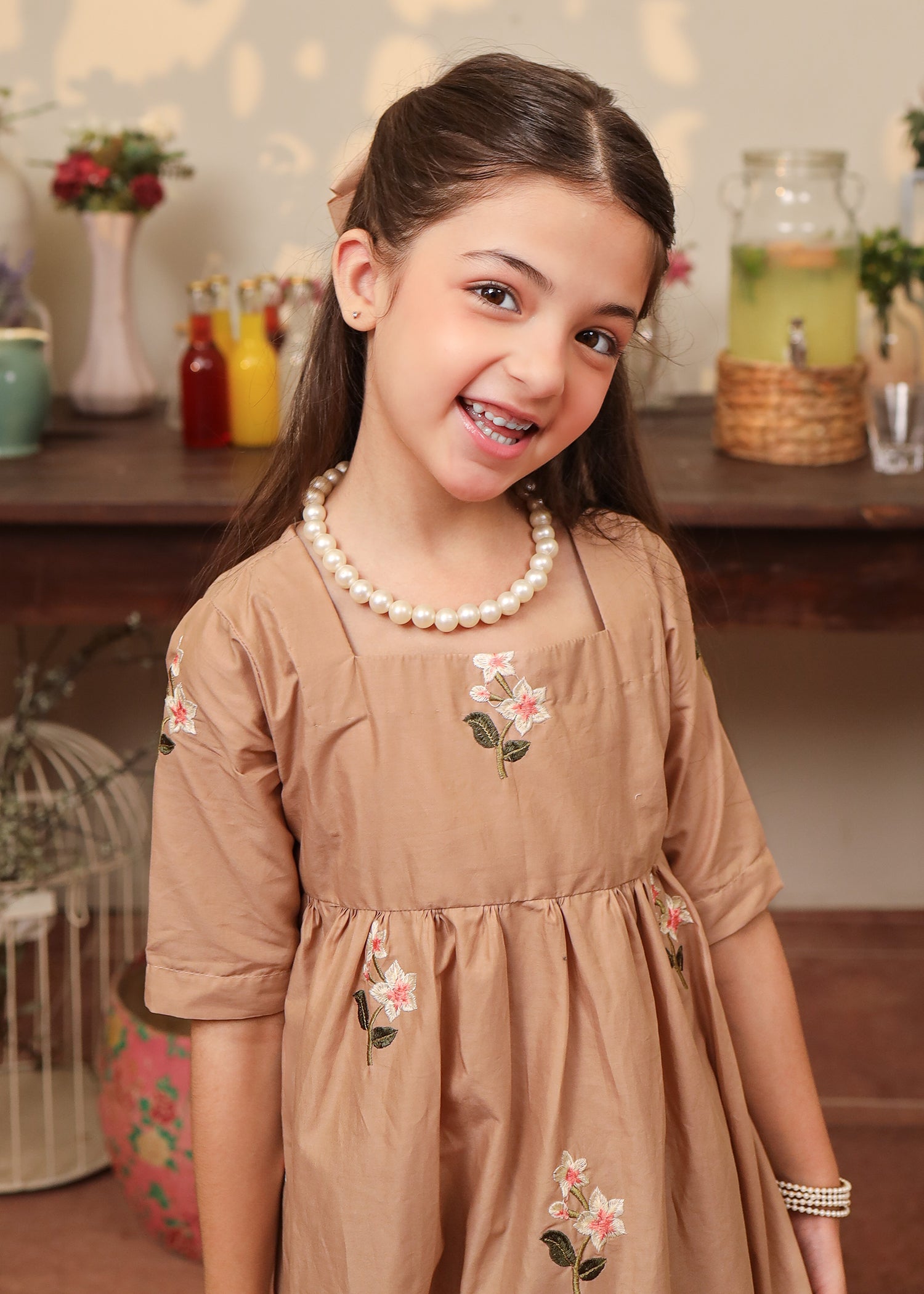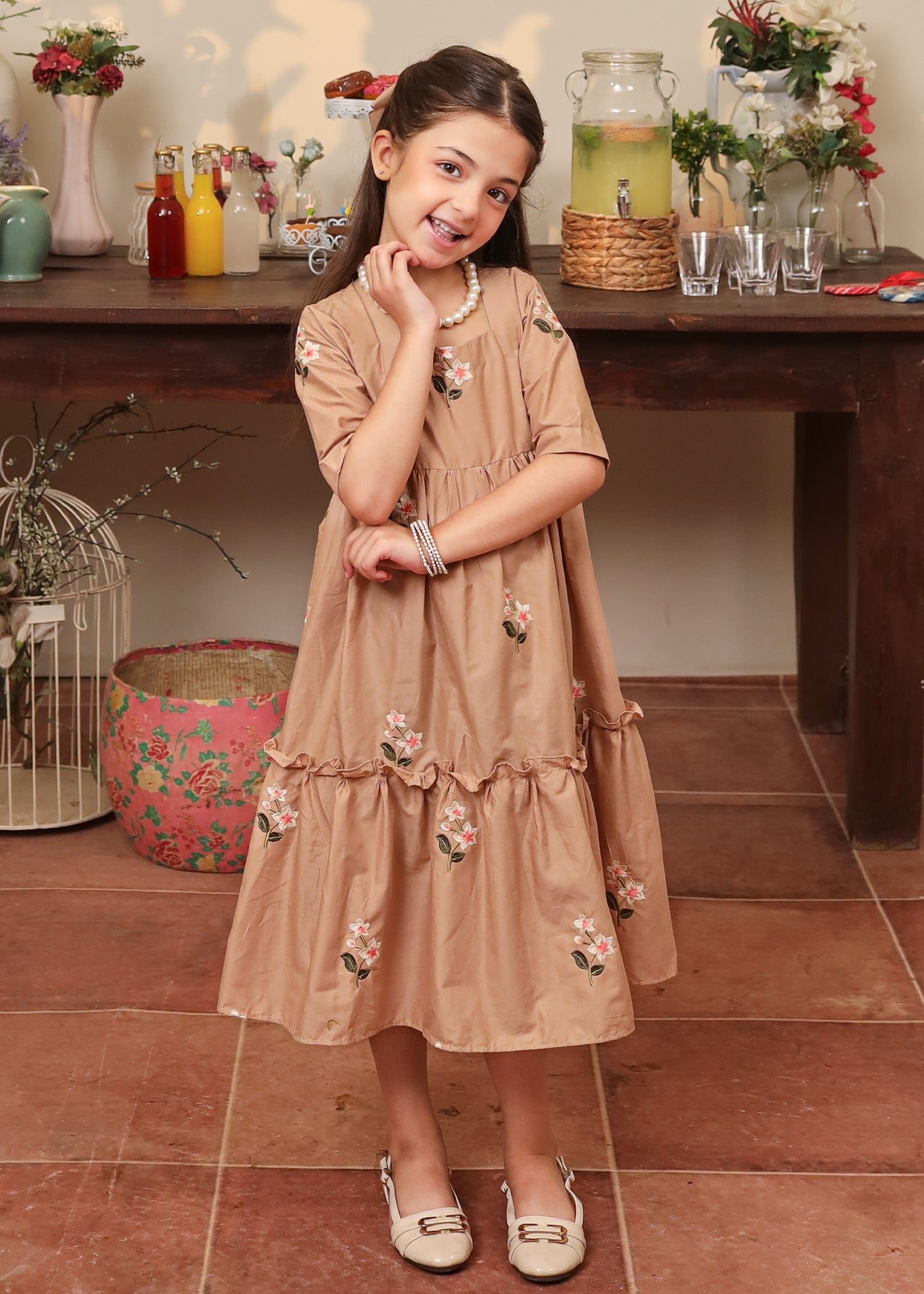 The square cut of the neckline complimented with fitted elbow length sleeves and a long bottom frill make the dress elegant and chic at the same time.This embroidered cotton dress is everything that you need this spring!