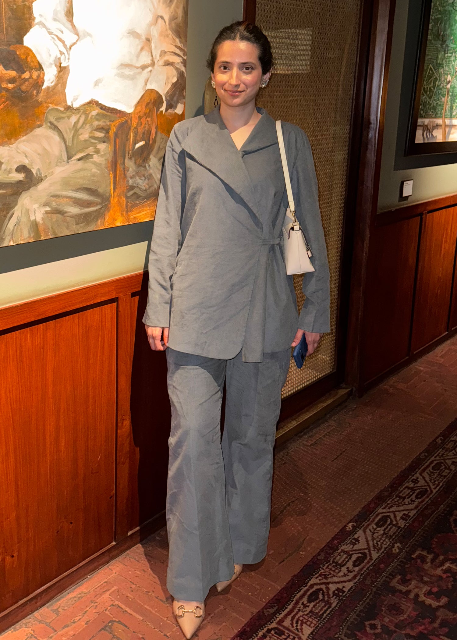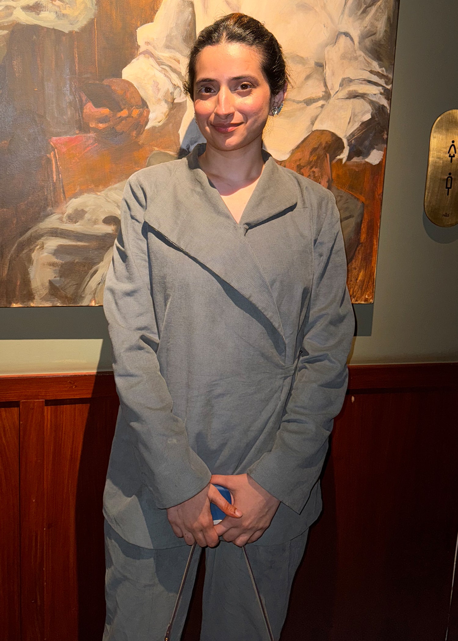 Refresh your everyday wardrobe with this understated grey corduroy co-ord set, designed for effortless sophistication and comfort. The wrap-style top features clean lines and a structured yet relaxed fit, adding a modern edge to the classic corduroy texture. Paired with straight-cut trousers, the set offers a balanced silhouette that feels both polished and easy to wear. Ideal for casual outings, gallery visits, or elevated daywear, this co-ord set blends timeless tailoring with contemporary minimalism.