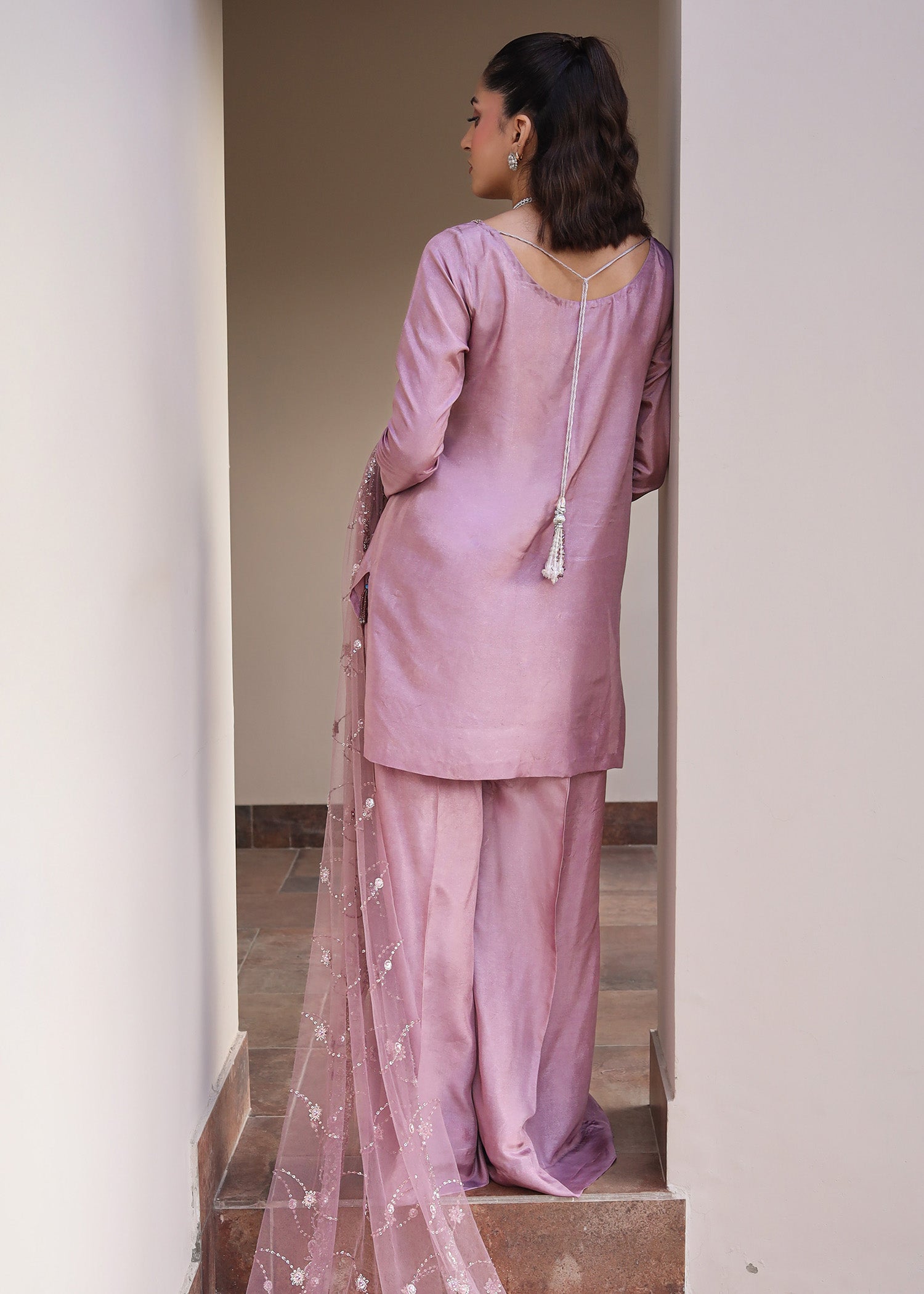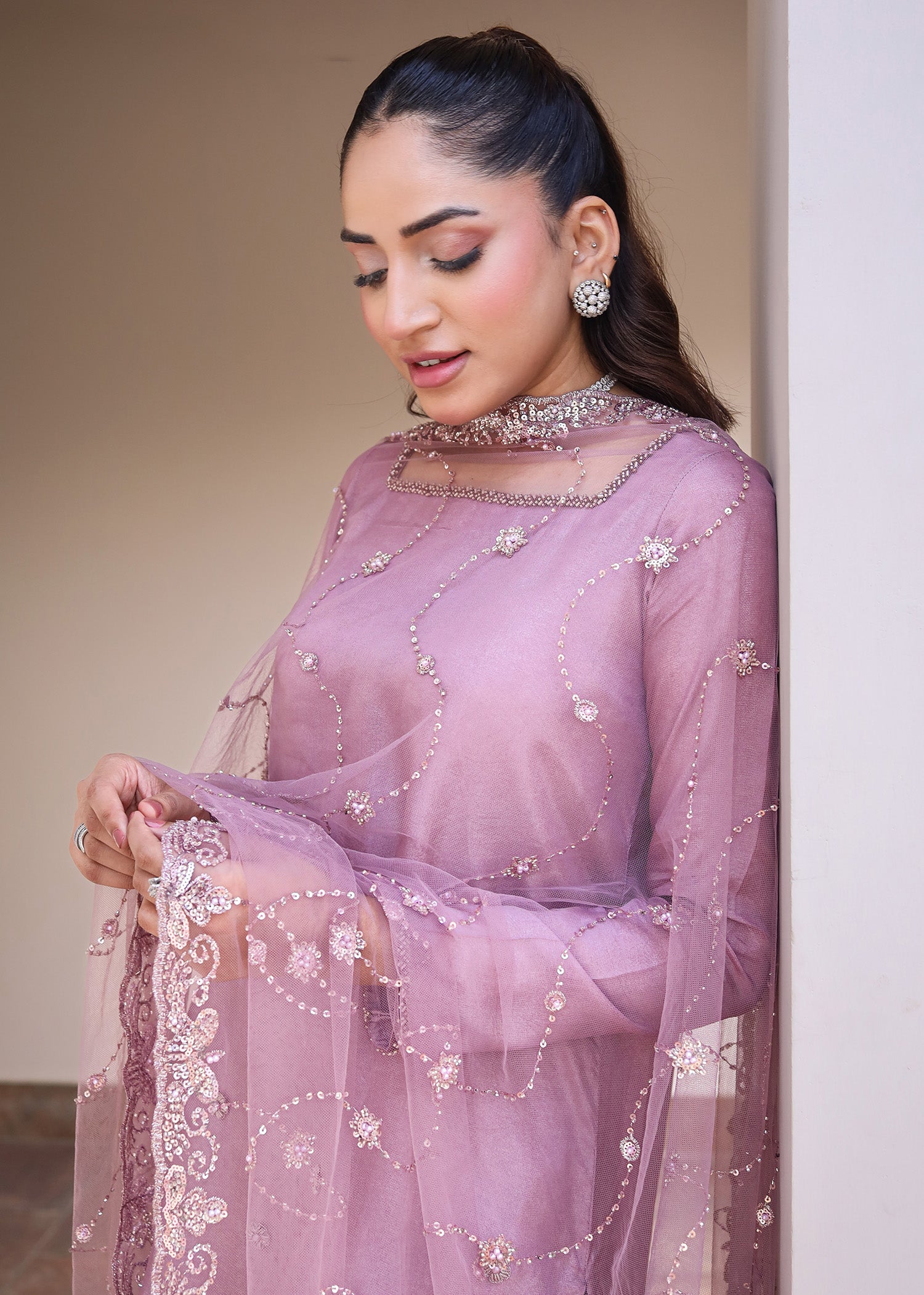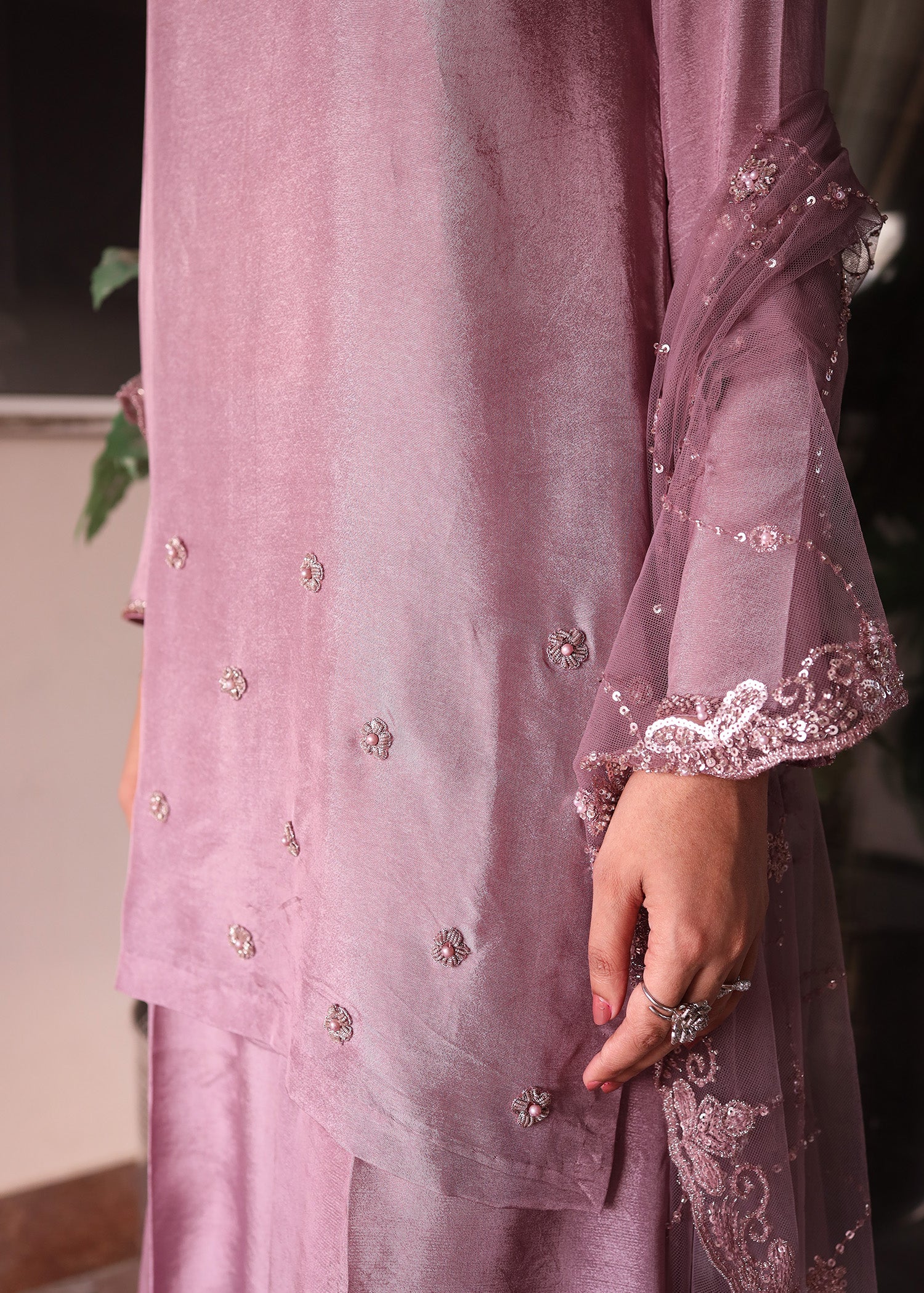 Delicate, graceful, and undeniably enchanting — Lilac Enchant is crafted in a soft lilac base with a sheer, intricately embroidered overlay. Paired with wide-leg trousers for a modern silhouette, this luxury semi-formal outfit blends femininity with elegance. A perfect choice for daytime festivities, evening soirées, or intimate gatherings where subtle glam makes the loudest statement.