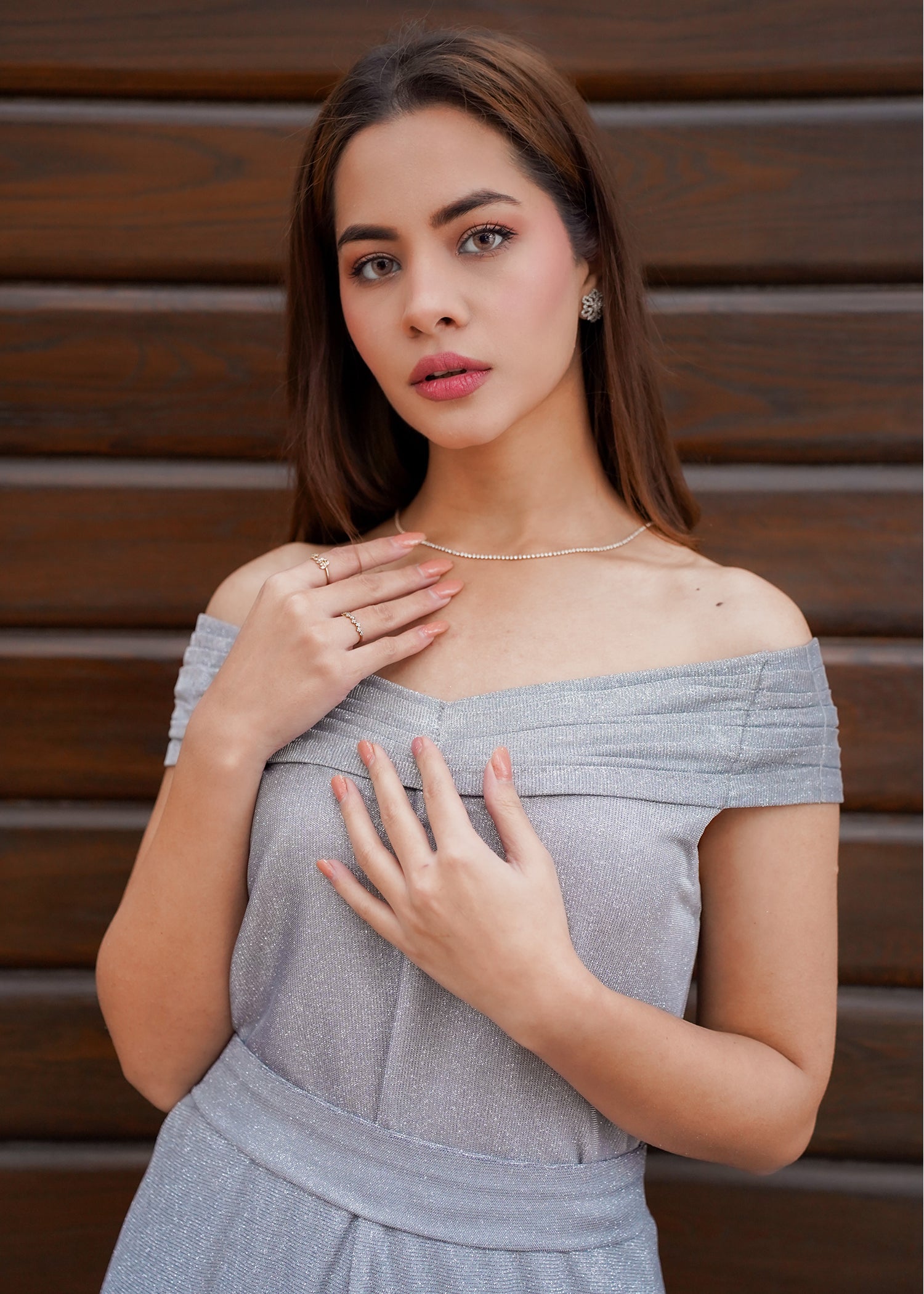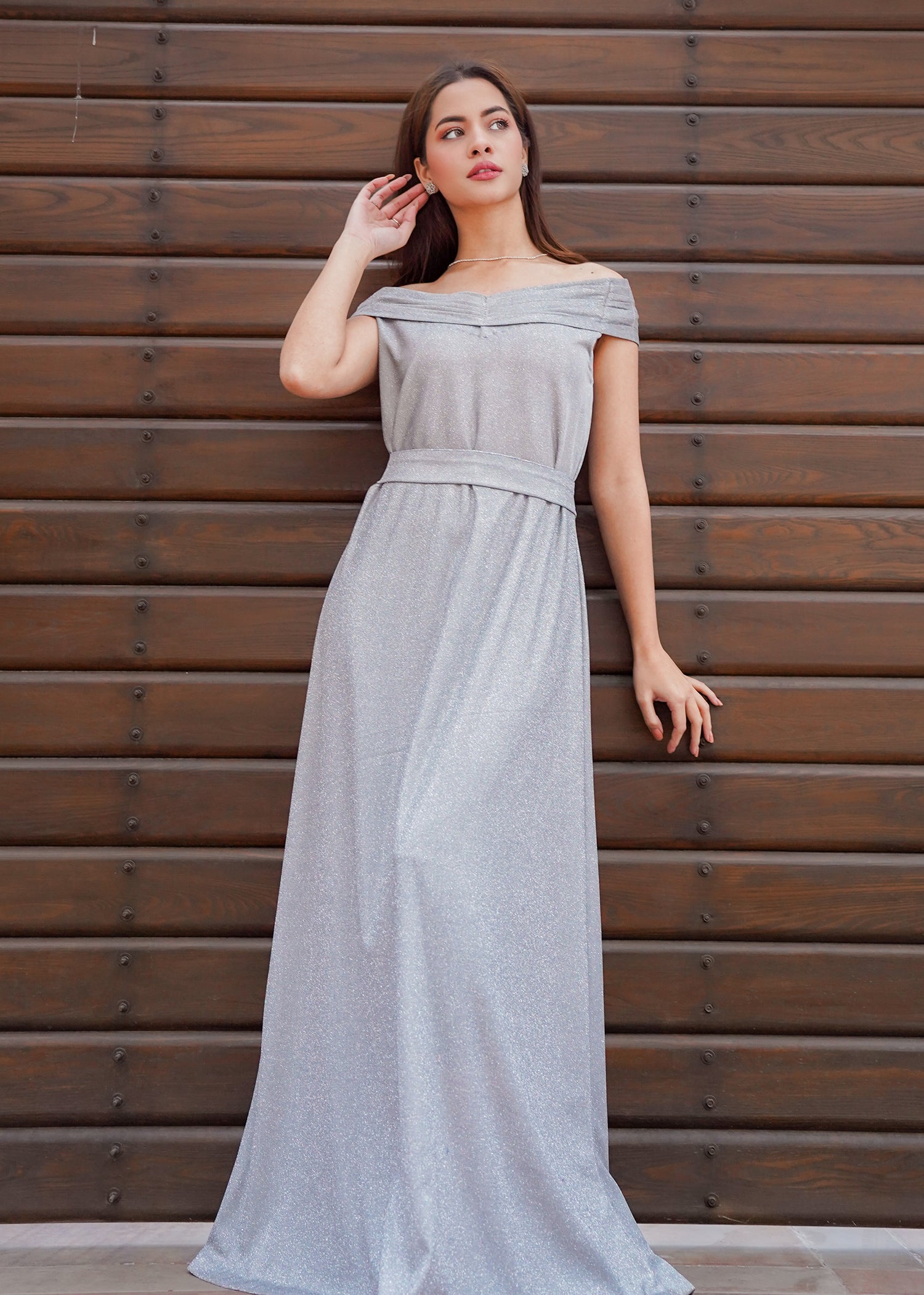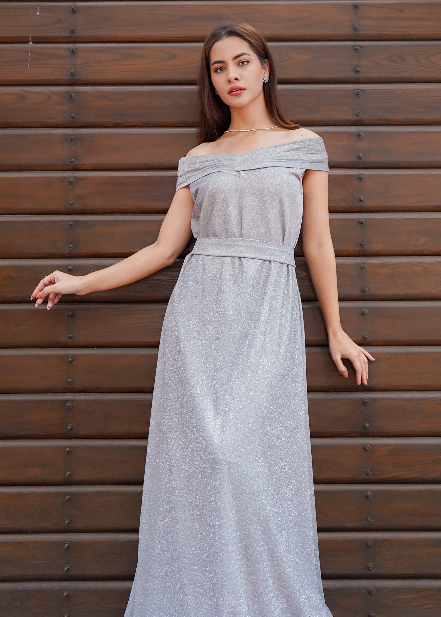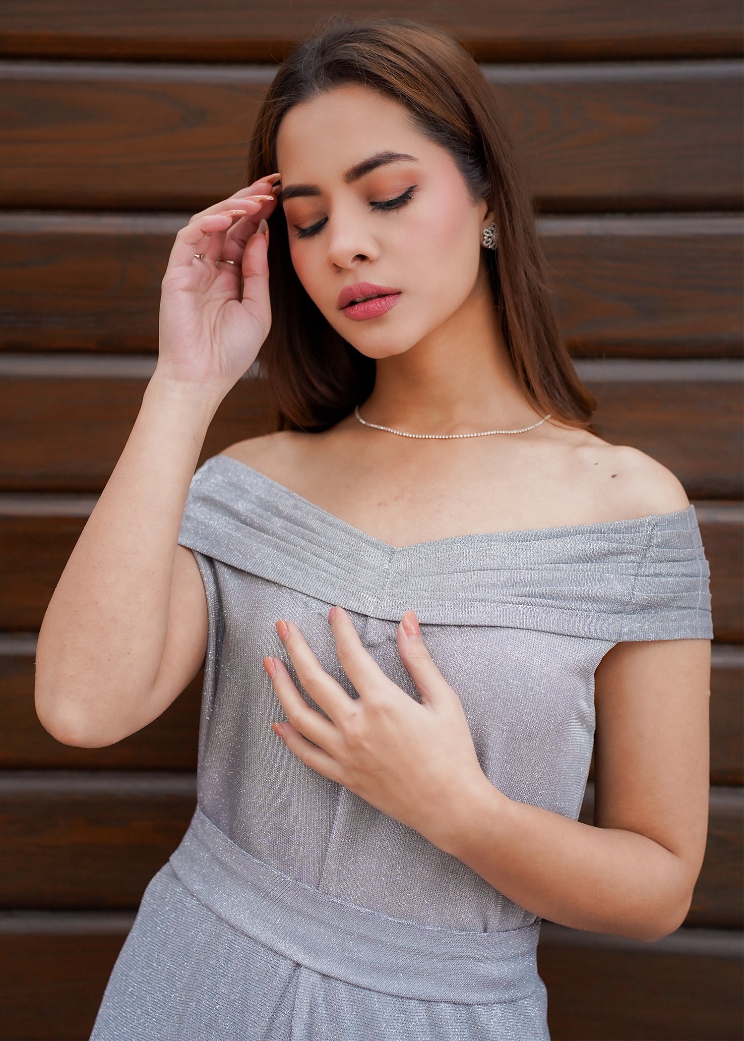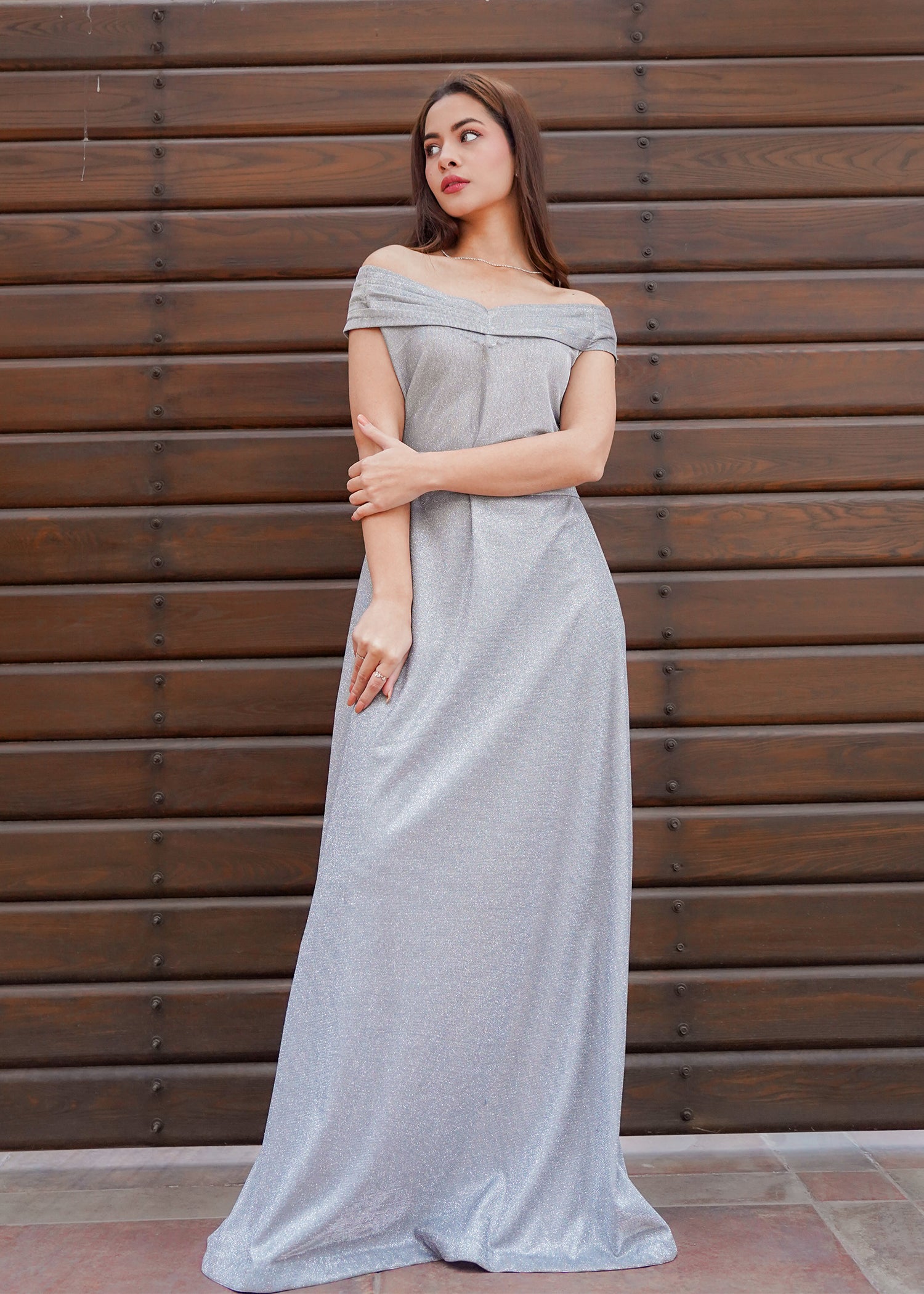 A stunning silver moonlight dress featuring an elaborate neckline that will make you dress stand out in all your evenings out!