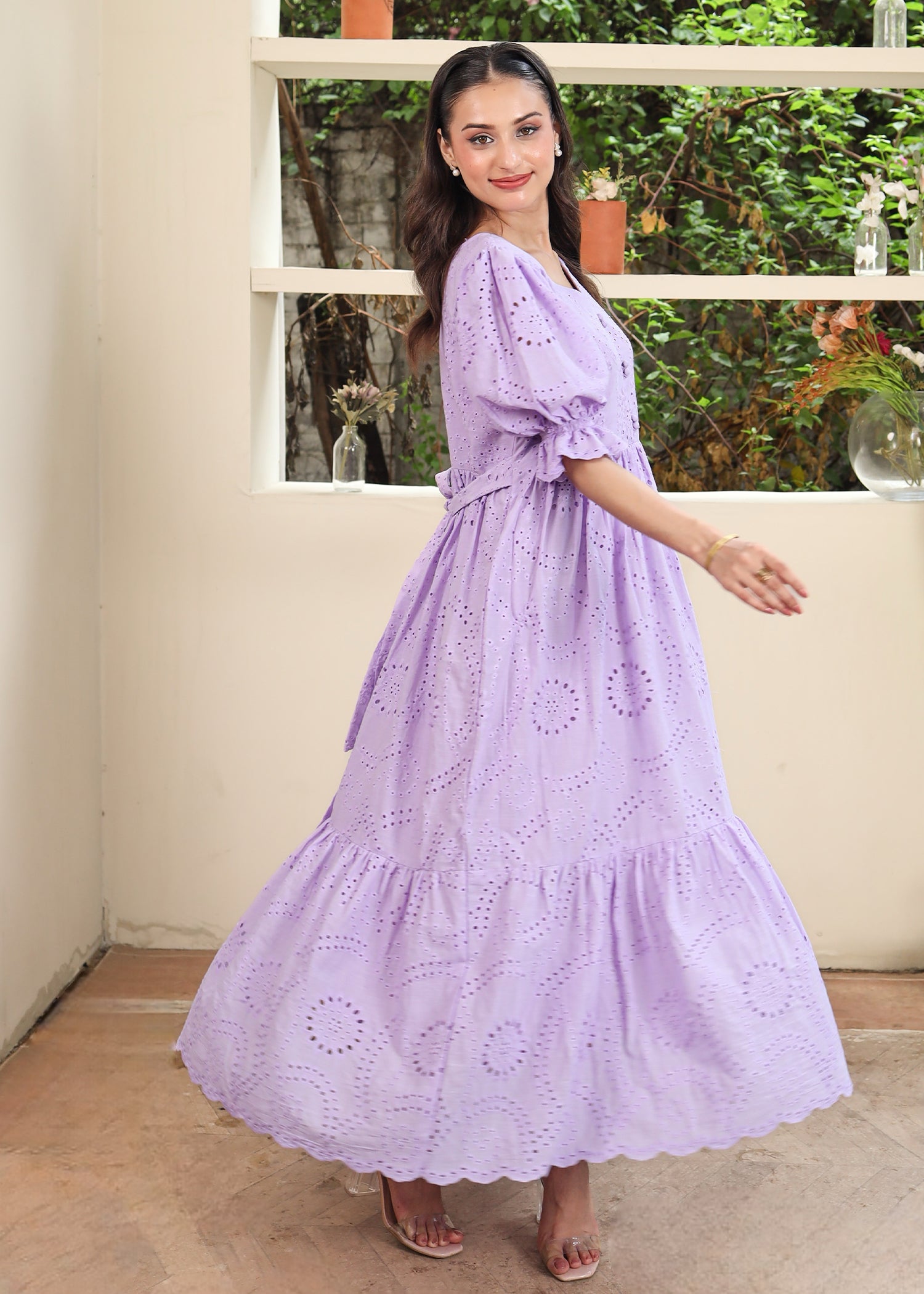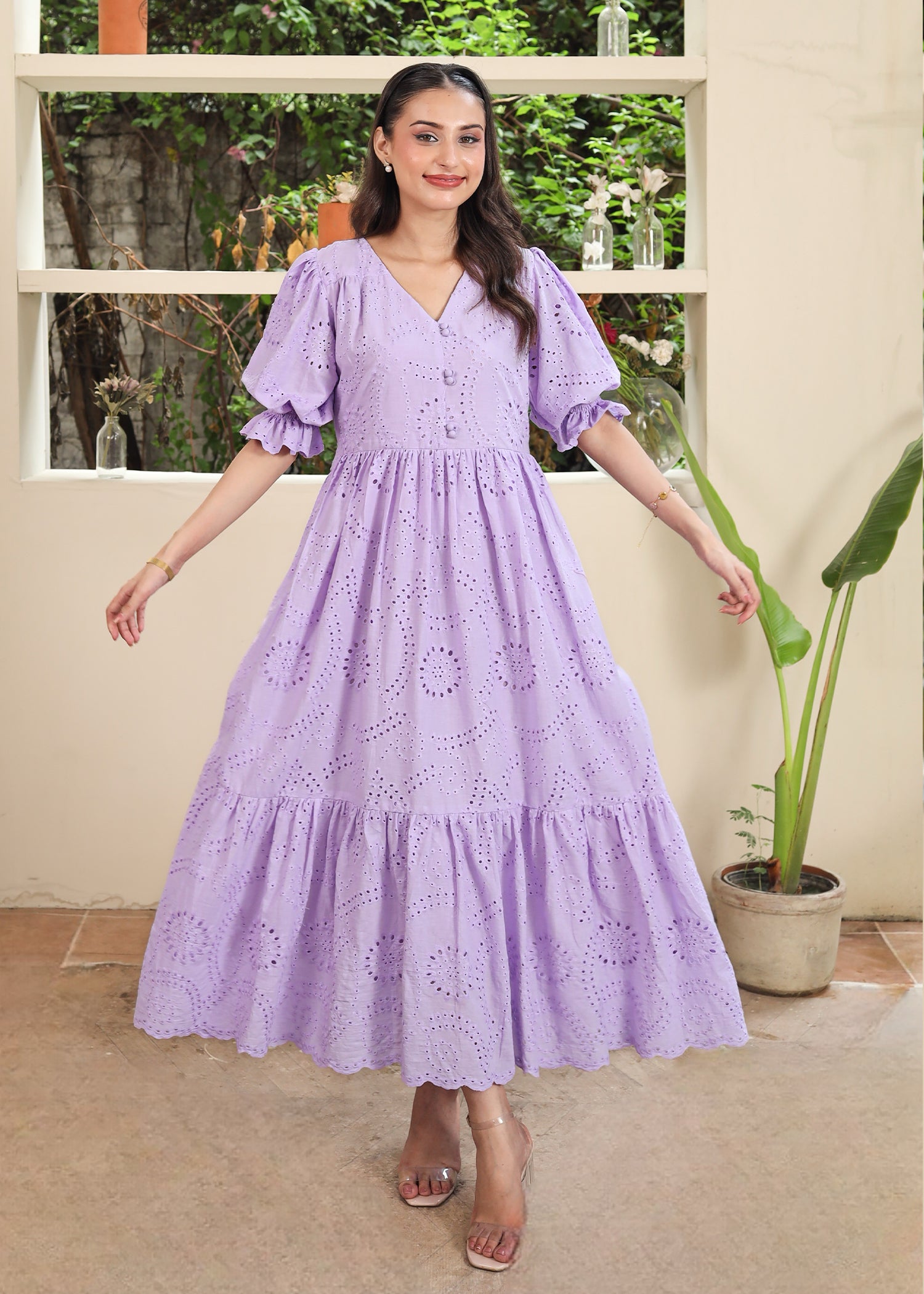 Fabric of the dress is eyelet (chikankari) with an attached lining.